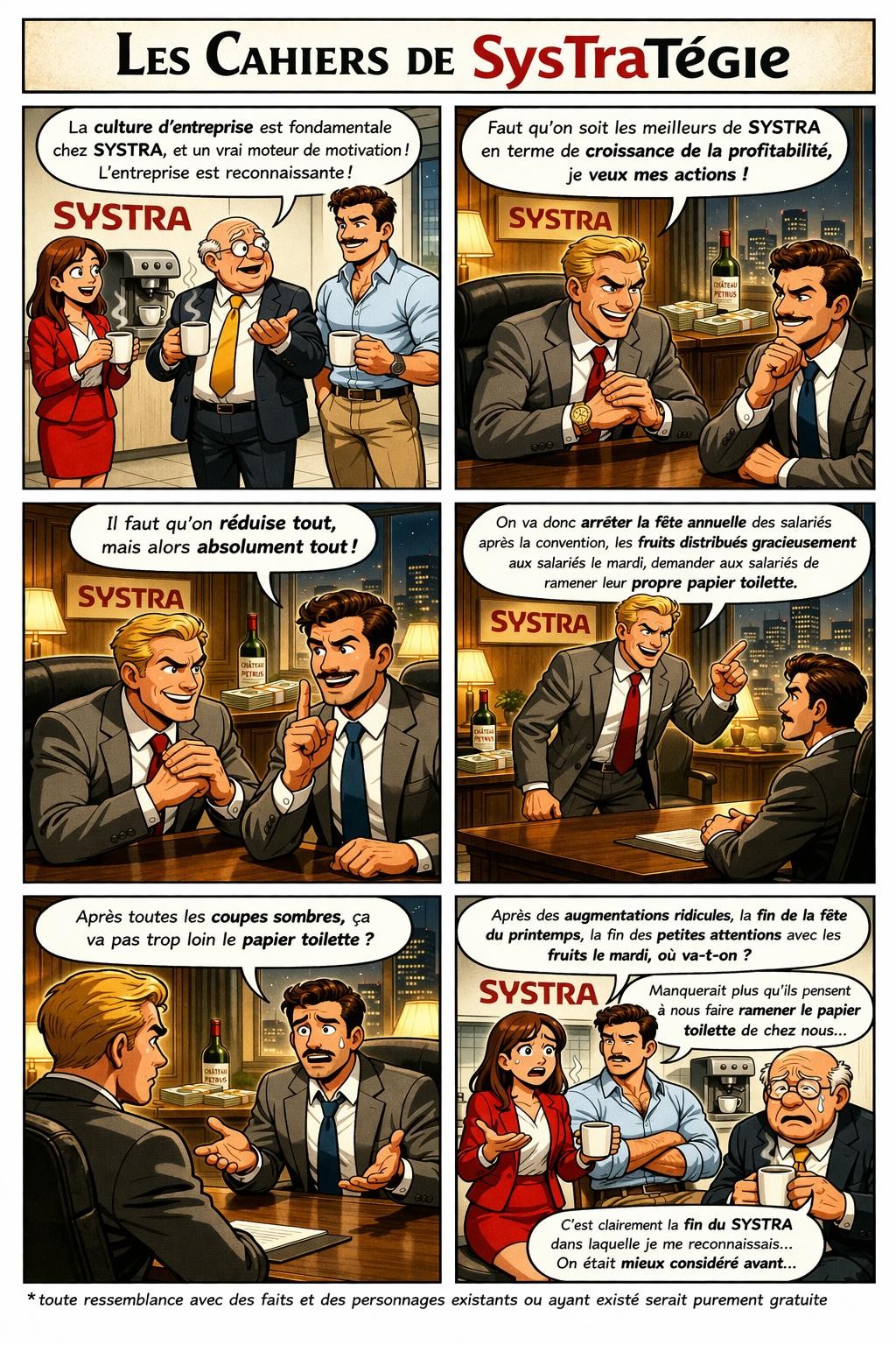 Avr12026Actualités Partagez sur les réseaux sociauxShare with FacebookShare with TwitterShare with LinkedInArticles similairesLes Cahiers de SysTraTégie : Poisson d’Avril1 avril 2026Les cahiers de SysTraTéGie ; Comment délocaliser le Made In France “ni vu ni connu”11 mars 2026Les Cahiers de SysTraTégie ; NAO 2026, Régime Au Pain Sec4 mars 2026Quand la « normalité financière » rime avec précarité salariale et illusions managériales18 février 2026Les NAO ont commencées, voici nos demandes!26 janvier 2026Une nouvelle partie de Meccano11 avril 2025